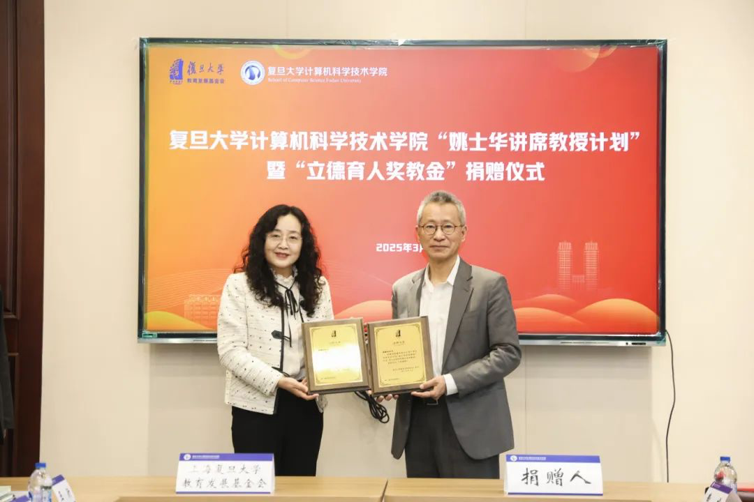 捐赠仪式在热烈的氛围中圆满落幕。在复旦大学计算机建系五十周年之际,姚校友的慷慨捐赠,充分彰显了校友心系母校的赤子情怀,也将为复旦大学计算机科学技术学院的学科建设与人才培养注入新动能,助力其在计算机领域书写更辉煌的篇章。