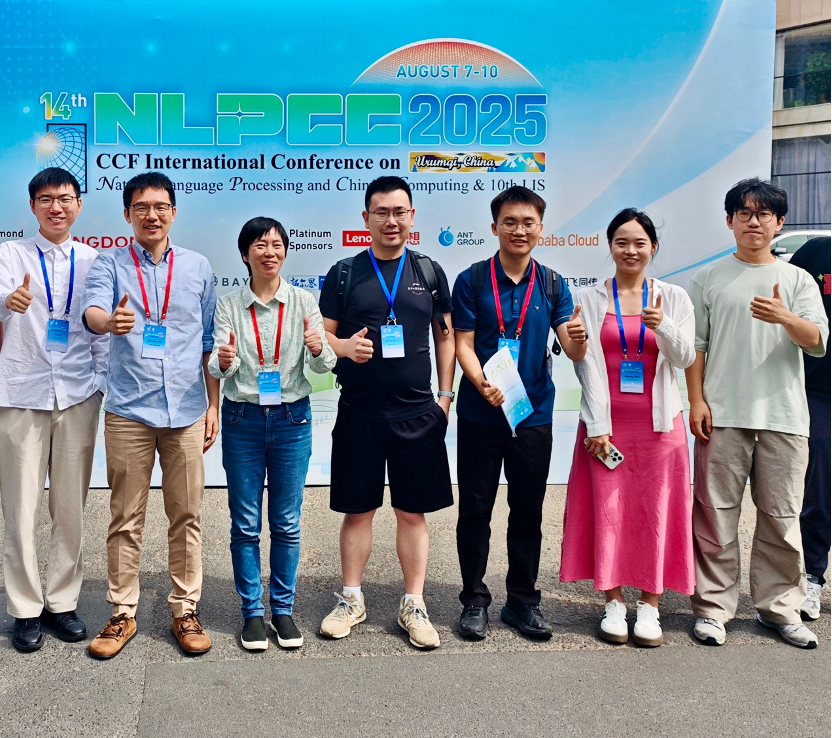 项目负责人窦士涵(右一)和黄萱菁教授(左三)