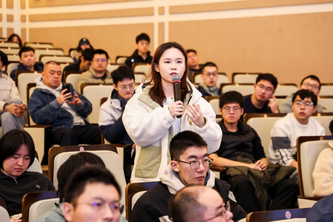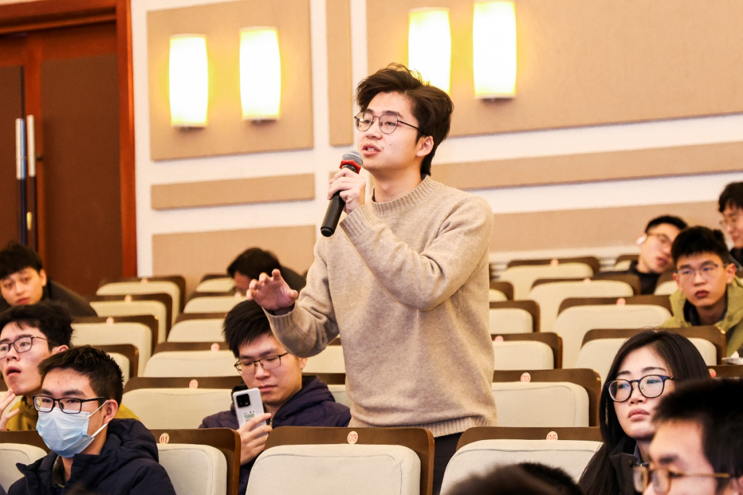 在互动交流环节中,现场的本科和研究生同学以及校友代表踊跃提问,与Bjarne Stroustrup教授就C++语言的关键技术决策、发展方向、生态建设等方面进行了热烈的讨论。