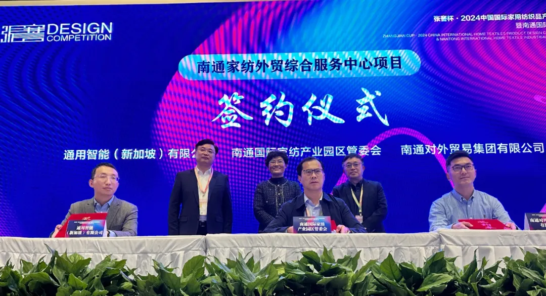 2024年,邱致中(前排左一)出席南通家纺外贸综合服务中心项目签约仪式