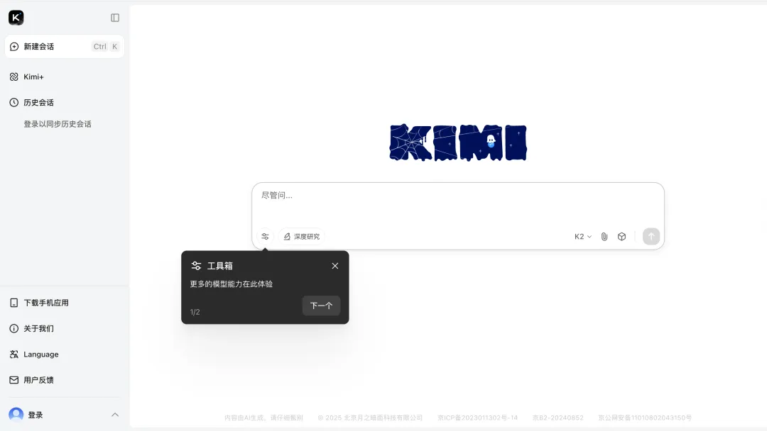 旗下产品Kimi页面截图 图片来源:Kimi