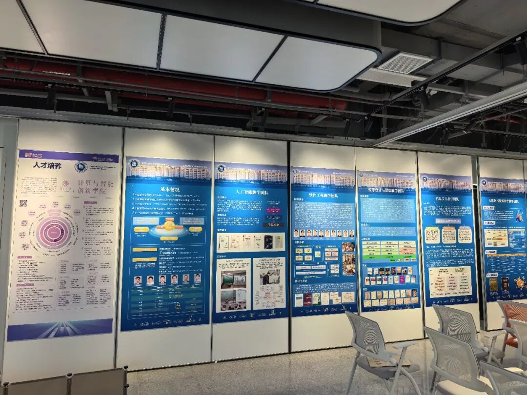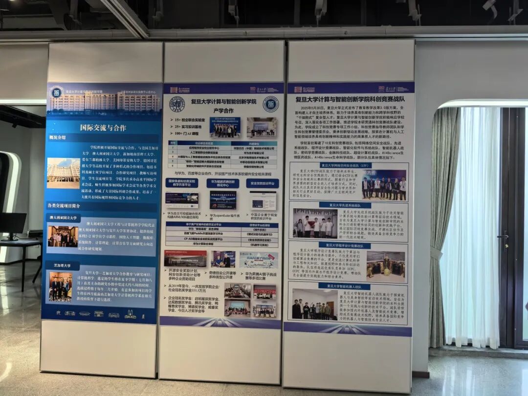 除此之外,展厅还设置了宣传展示板,可以制作各类课程、实验介绍和教学成果的宣传展板,使得同学们能够系统地了解计算机相关教学体系与学院的教学组织架构,对于个人的发展规划有所帮助。