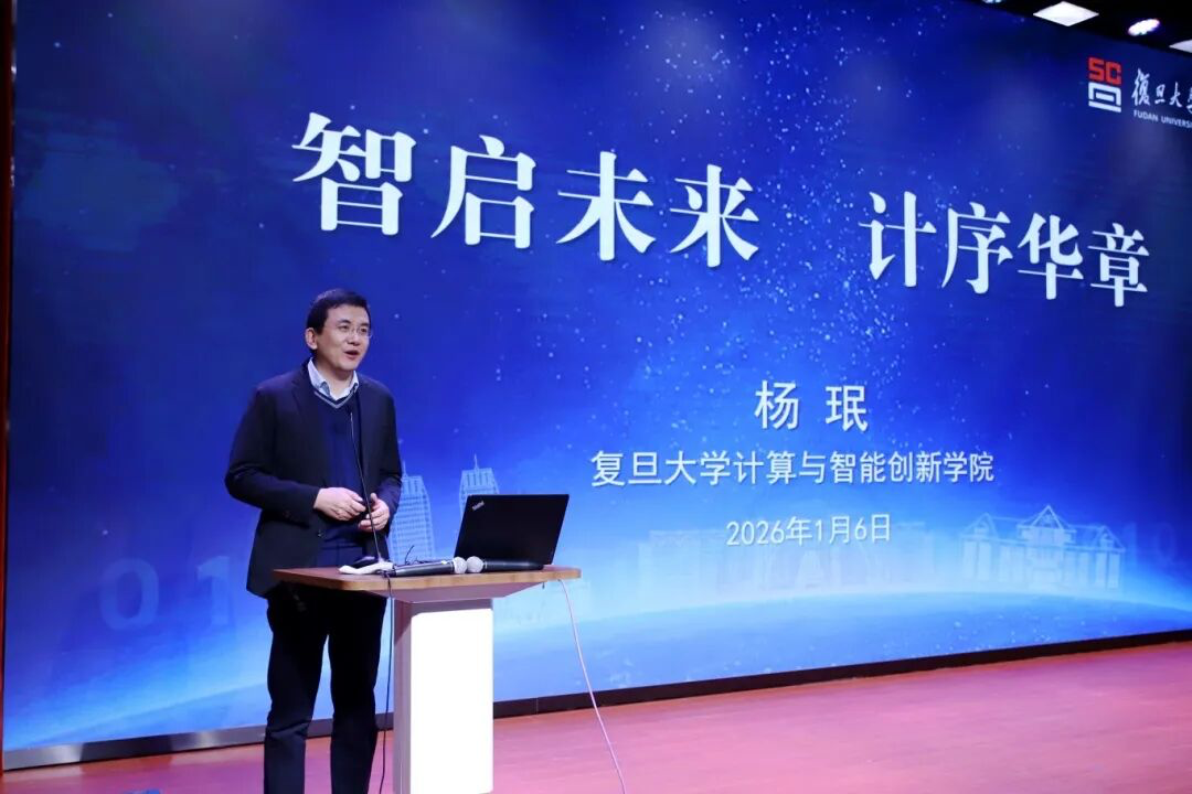 2026年1月6日上午,计算与智能创新学院在江湾校区二号交叉学科楼E1006报告厅召开全院教师大会。学院院长汪源源,党委书记王新,执行院长杨珉,党委副书记邹宏、顾宁,副院长彭鑫、曹瑜、卢暾,退休教职工代表及全体教职工参加会议。会议由曹瑜主持。