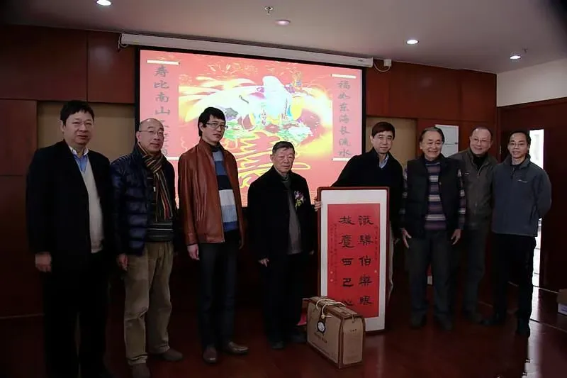 ▲施伯乐(左四)80岁诞辰时,弟子们也曾为他庆贺