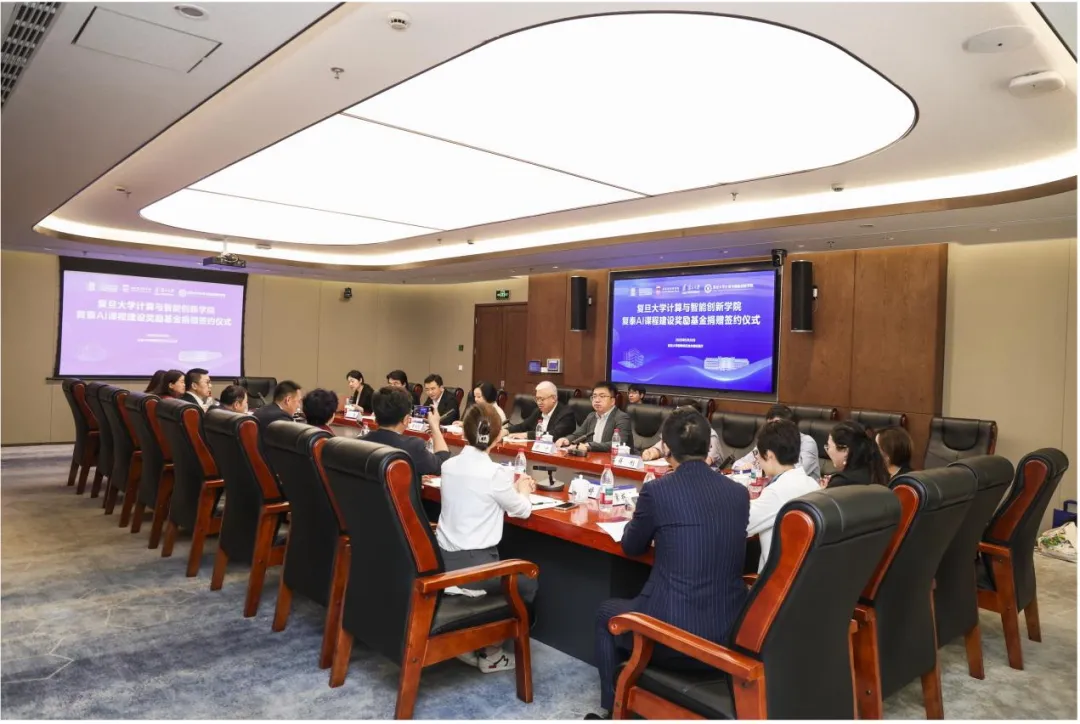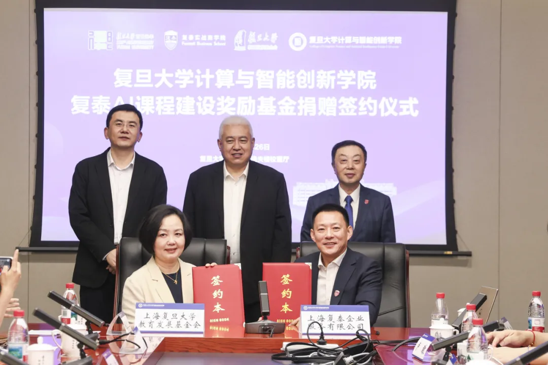 在复旦大学建校120周年之际,5月26日上午,复旦大学计算与智能创新学院复泰AI课程建设奖励基金捐赠签约仪式在复旦大学邯郸校区逸夫楼校董厅举行。