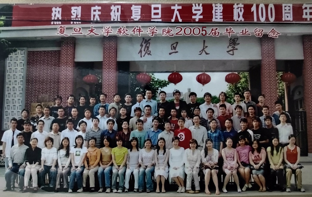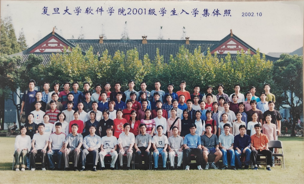 2001级软件学院是一个特殊群体。那时候80名同学来自复旦大学不同的院系,有数学系、力学系、化学系、药学院、网络学院等等、因为有了一年多的本科生活,所以在02年大家聚在一起的时候,其实已经有了各自原院系的烙印。另外一面,各自同学的交际圈不限于本院系,朋友圈的交际有更多更大的链接。老大(臧斌宇院长)在毕业赠言中写到“平时,你们自成一体,自娱自乐,这在软院的所有班级中也是非常独特的”,我们各自有n个小团体,但又彼此交融。就像二进制0和1的数字一样可以组成,形成了无限的可能。