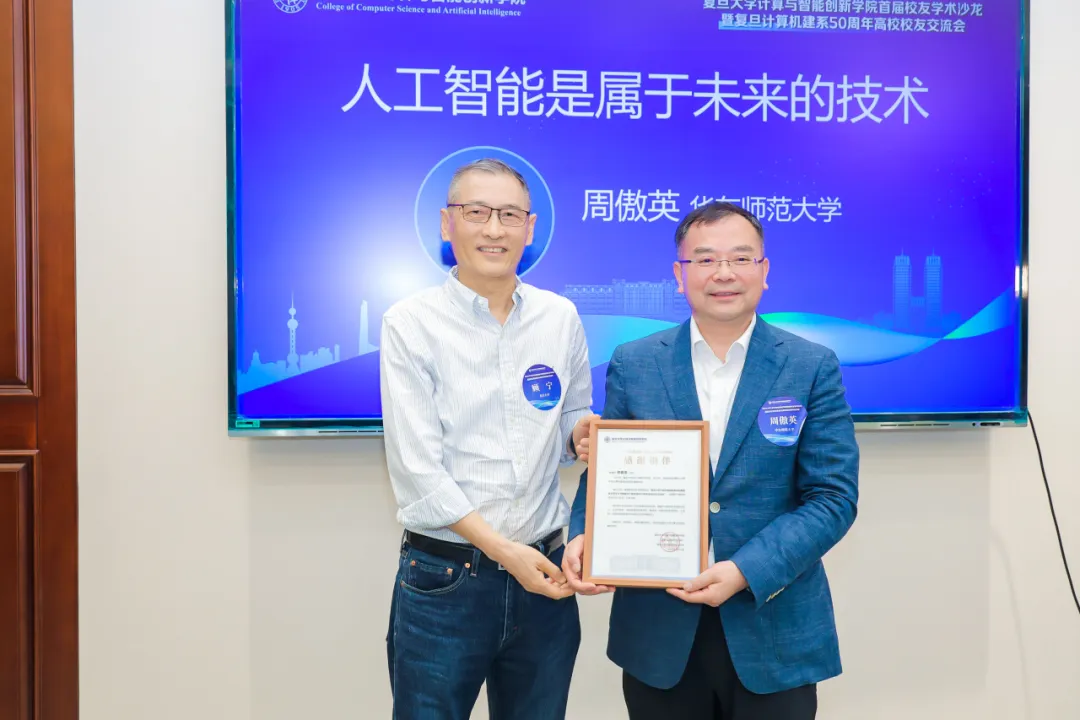 与会校友还就复旦120周年校庆提出建议,包括加强校友联系、搭建开放共享平台、进一步凝聚学科发展共识。圆桌论坛结束后,原计算机学院副院长赵一鸣老师代表学院为四位校友嘉宾颁发感谢信。